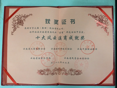 2013年十大風(fēng)云滇商成就獎(jiǎng)