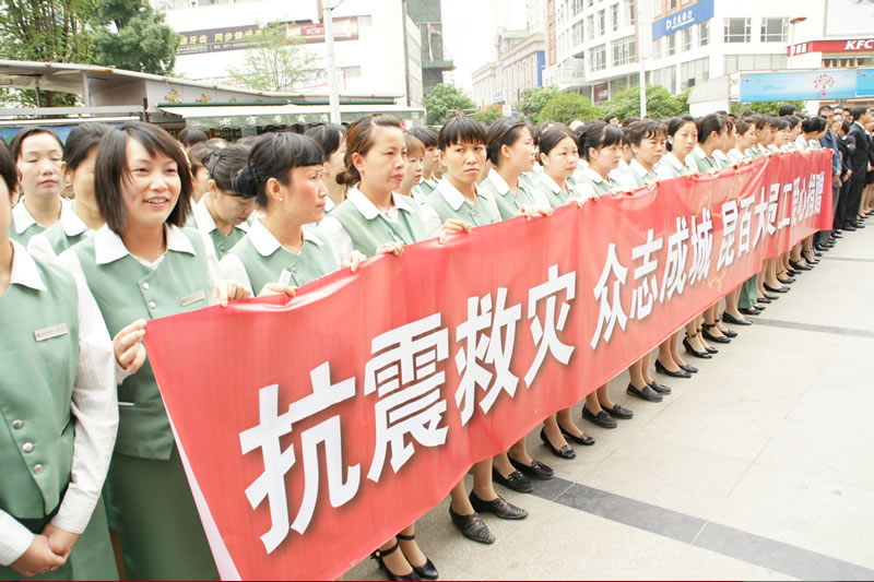 2008年5月12日,四川汶川發(fā)生大地震,昆百大集團發(fā)起“攜手救災(zāi)同心抗震昆百大在行動”抗震救災(zāi)活動,集團捐款100多萬元,捐贈30萬元的藥品,全體員工自愿捐款。