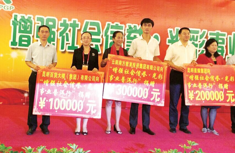 2014年8月4-5日,昆百大參加了由云南省工商聯(lián)和云南省光彩事業(yè)促進會在普洱市舉辦的“增強社會信譽,光彩事業(yè)普洱行”活動,向光彩事業(yè)捐贈了人民幣10萬元。