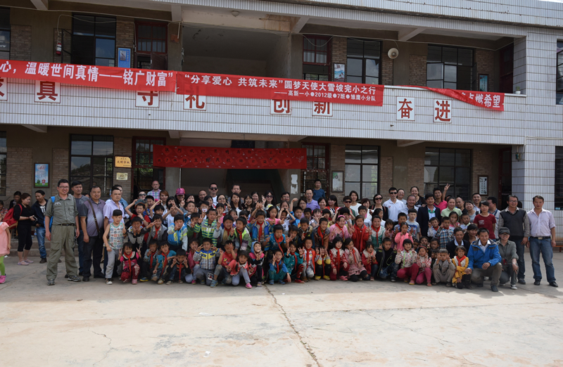 2015年5月23日,野鴨湖攜手昆明市高新一小三(7)班的39位同學(xué)及家長到楚雄州武定縣環(huán)州鄉(xiāng)的大雪坡村小學(xué),看望50多個留守兒童,開展“分享愛心 筑夢之旅”主題公益活動。