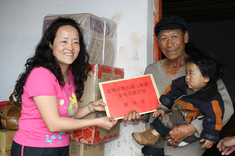 2012年,百大家電向師宗雄壁鎮(zhèn)小召發(fā)村的礦難家庭冰倩家現(xiàn)金捐款、物資捐贈(電器、衣物、書記、文具用品、生活用品等)金額共計8022元。