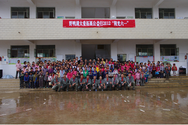 2012年,野鴨湖大愛拓展公益行2012“陽光六一”活動向盤龍區(qū)滇源鎮(zhèn)菜子地小學(xué)現(xiàn)金捐款、物資捐贈(豬、書籍、文具等)、個人捐款1.2萬元,并組織該校全體師生進行半天拓展訓(xùn)練。
